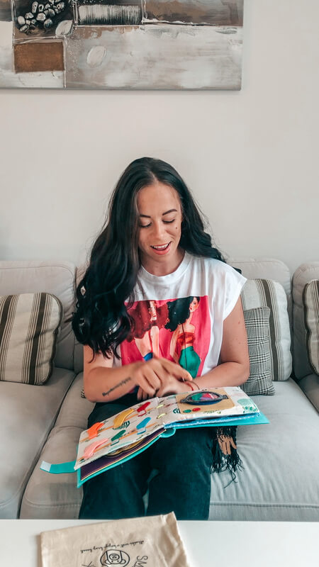 Κάθε σελίδα του σιωπηλού βιβλίου εισάγει το παιδί σε μια διαφορετική κατάσταση, περιβάλλον, νέα χρώματα, σχήματα, παρουσιάζει διαφορετικά ζώα, εποχές και προσφέρει διαφορετικές δραστηριότητες, όπως κουμπιά κουμπιών, κλωστή, άνοιγμα με φερμουάρ, διάφοροι τύποι κορδονιών και κρίκων ).