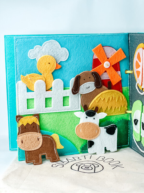 Ο όρος «Σιωπηλό Βιβλίο» αναφέρεται σε ένα βιβλίο χωρίς λόγια πουδιεγείρει τη φαντασία, τη δημιουργικότητα και τις λεπτές κινητικές δεξιότητες των παιδιών. Περιέχει 6 σελίδες δραστηριοτήτων και ένα σετ παιδικές κούκλες με δάχτυλο. Κατάλληλο για ηλικίες 9 μηνών και άνω καθώς εισάγει τα παιδιά σε διάφορα ζώα φάρμας που μπορούν να μιμηθούν, προσφέρει την ευκαιρία να παίξουν με μαριονέτες και τα βοηθά να μάθουν για διαφορετικά χρώματα, υφές και να ξεπερνούν τα εμπόδια με τη βοήθεια ενός παζλ κάμπιας. Χειροποίητο και εκπαιδευτικά σχεδιασμένο για να ενθαρρύνει τα παιδιά να ανακαλύψουν και να μάθουν νέα σχήματα, ταξινόμηση και οργάνωση Οι σελίδες είναι εναλλάξιμες, επιτρέποντάς σας να τις αναδιατάξετε όπως θέλετε ή να τις μοιραστείτε μεταξύ των αδερφών.
