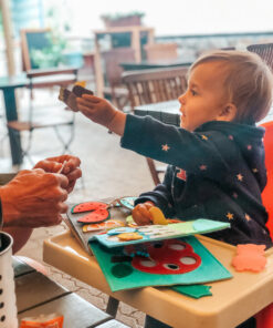 Χρωματιστά φρούτα: Αυτή η δραστηριότητα ενθαρρύνει τον συντονισμό χεριού-ματιού καθώς η αποστολή του παιδιού είναι να βρει ζευγάρια που ταιριάζουν. Παρουσιάζει διάφορα είδη φρούτων. Τα κομμάτια συνδέονται σε χορδές, γεγονός που καθιστά ευκολότερο τον έλεγχο της δραστηριότητας. Ονομάστε το φρούτο που εμφανίζεται για το παιδί.