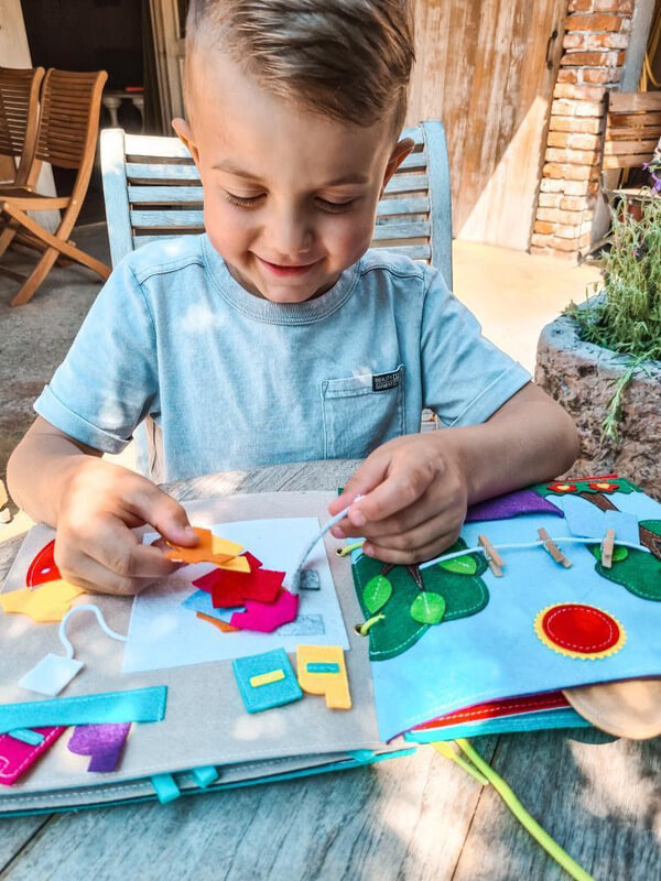 ✅ Εξαιρετικές κινητικές δεξιότητες: Τα παιδιά θα αναπτύξουν τις δεξιότητες των δακτύλων και των χεριών μετακινώντας διάφορα διαδραστικά στοιχεία στο σιωπηλό βιβλίο, όπως φερμουάρ, κουμπιά, παιδικά κορδόνια κατανόηση των σχέσεων αιτίου-αποτελέσματος, αναγνώριση χρωμάτων, σχημάτων, αριθμών και άλλων στοιχείων, που συμβάλλει στην ανάπτυξη των γνωστικών ικανοτήτων.