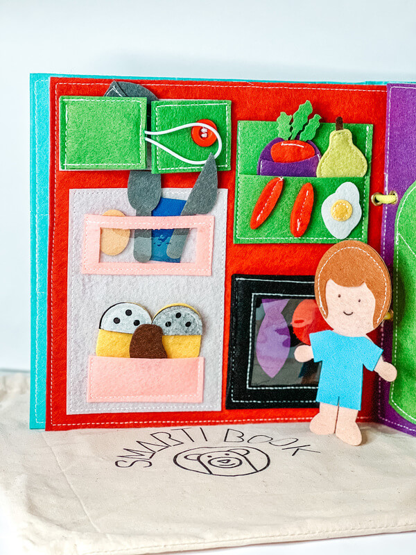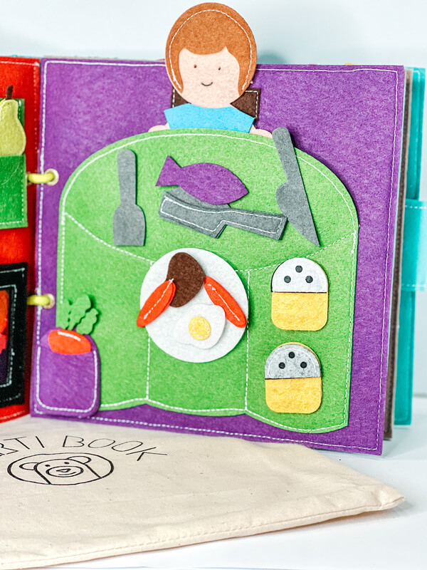 Ο όρος “Silent Book” αναφέρεται σε ένα βιβλίο χωρίς λέξεις που ενθαρρύνει τη φαντασία, τη δημιουργικότητα και τις λεπτές κινητικές δεξιότητες των παιδιών. Περιλαμβάνει 9 σελίδες δραστηριοτήτων. Είναι κατάλληλο για ηλικίες 4 και άνω, επειδή προσφέρει πολλές δραστηριότητες προσχολικής ηλικίας που βοηθούν το παιδί να ολοκληρώσει εργασίες που σχετίζονται με τον γραμματισμό. Μέσα από το παιχνίδι, το παιδί θα ενισχύσει τις λεπτές κινητικές δεξιότητες, οι οποίες θα βοηθήσουν στην εκμάθηση της γραφής. Θα αναπτύξουν επίσης τολεξιλόγιο τους μέσα από διάφορα θέματα όπως οι δουλειές του σπιτιού, το φαγητό και το ποτό. Μια αγαπημένη δραστηριότητα των παιδιών είναι αυτή που περιλαμβάνει δάχτυλα, γροθιές και ορειχάλκινα σύμβολα, μέσω των οποίων κάθε παιδί μαθαίνει συγκεκριμένα προσθέτωκαι αφαιρεί έως 10. Στη συνέχεια, μπορούν να αποθηκεύσουν προσεκτικά όλους τους αριθμούς στην προηγούμενη σελίδα του σχολείου. Το σιωπηλό βιβλίο είναι χειροποίητο και σχεδιασμένο εκπαιδευτικά από τον για να ενθαρρύνει το παιδί σας να ανακαλύψει και να μάθει νέα σχήματα, να ταξινομεί και να οργανώνει. Οι σελίδες είναι αφαιρούμενες, επιτρέποντάς σας να τις αναδιατάξετε όπως θέλετε ή να τις μοιραστείτε μεταξύ των αδερφών.